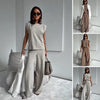 COMPLETE 2-PIECE SET - Includes a cap sleeve t-shirt and wide-leg dress pants, offering a chic, ready-to-wear outfit that simplifies your wardrobe choices for any occasion.